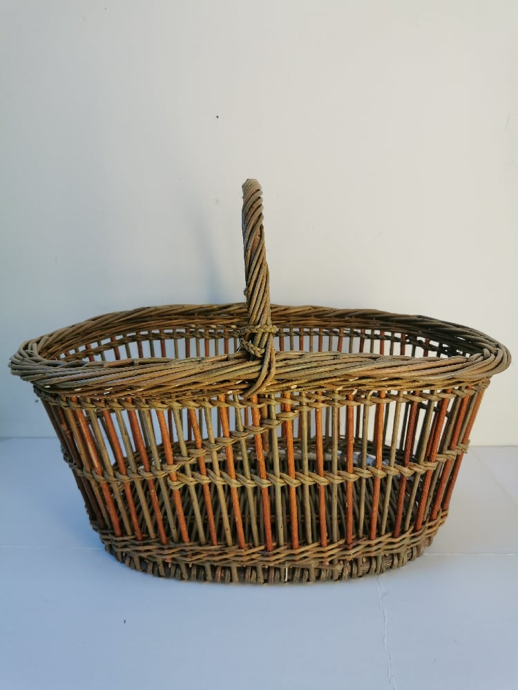 A large French-style fitched basket. Perfect for shopping trips or picnics.